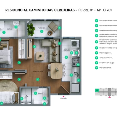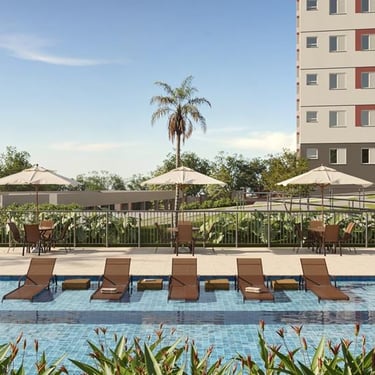Apartamentos de 2 dormitórios com varanda com ou sem suíte e área privativa, com opção de vaga coberta e área de lazer equipada.